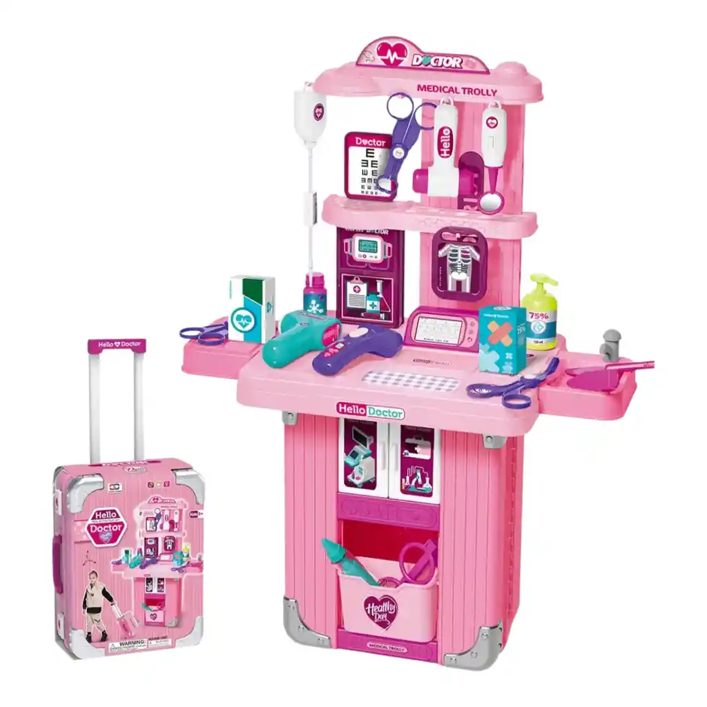HOLA SOMOS DISTRIBUIDORA JELOKIDS ¡Convierte cada día en una divertida aventura médica! Este increíble set de doctor infantil 2 en 1 es el regalo perfecto para pequeños y pequeñas aspirantes a médicos. Su diseño inteligente y colorido permite jugar de forma didáctica y entretenida, fomentando la imaginación, el juego de roles y el aprendizaje. Características principales: Diseño 2 en 1: Se transforma fácilmente de maleta con ruedas a una completa estación médica de juego. Incluye más de 20 accesorios: Estetoscopio, termómetro, jeringa, tijeras, frascos de medicina, rayos X, monitor y más. Fácil de transportar: Su formato tipo maleta con ruedas y asa extensible permite llevarlo a todas partes como un carrito de viaje. Material seguro y duradero: Hecho de plástico resistente, no tóxico y con bordes redondeados. Ideal para niños y niñas de 3 años en adelante. Beneficios del juego: Estimula la creatividad y la imaginación. Promueve el juego de roles y la empatía. Mejora la coordinación mano-ojo y las habilidades motrices finas. Perfecto para regalar: Ideal para cumpleaños, Navidad o cualquier ocasión especial. ¡Horas de diversión aseguradas mientras aprenden jugando! Vendemos productos de gran calidad Gracias por visitar nuestra pagina y de antemano agradecer la compra