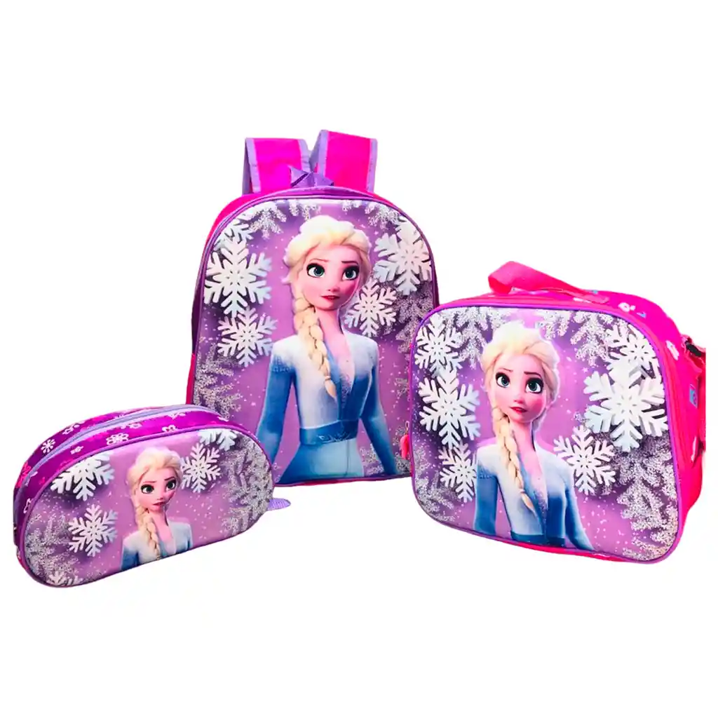 Kit morral maleta cartuchera y lonchera personajes infantiles. Morral tamaño carta Material lona poliéster impermeable Compartimentos de gran capacidad Dos bolsillos laterales en malla Correa y espaldar acolchado Altura x Ancho x Profundidad: 30 cm x 28 cm x 16 cm (Aproximados) Varios motivos Frozen, Paw Patrol, Encanto y muchos mas...