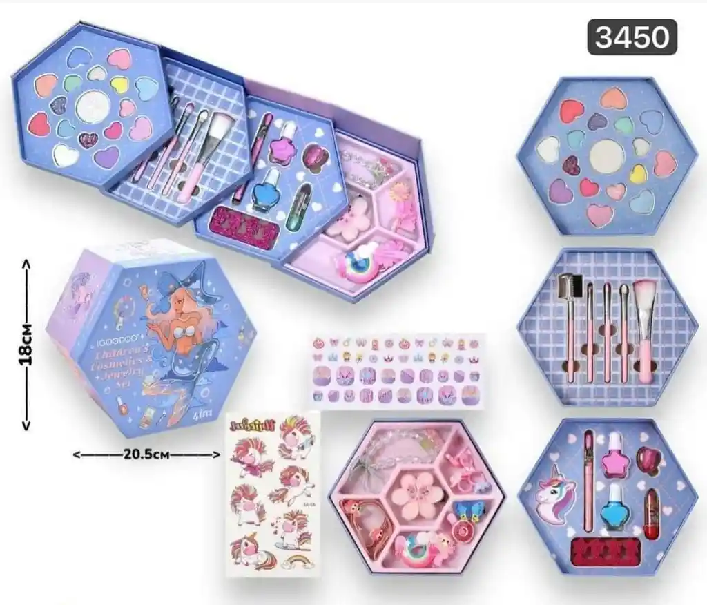 Kit de maquillaje para niños incluye gran variedas paleta de sombras ,kit de brochas,esmaltes ,accesorios para el cabello y stiker .Kit de maquillaje para niños Juguetes para niñas El diseño exterior suave hace que no sea fácil dañarse y protege las suaves manos de los niños Solo use una toalla de papel húmeda para limpiar suavemente y eliminar por completo cualquier resto de maquillaje. Kit de juguetes .caja de cosméticos portátil : caja apilable de 4 capas. ¡Este juego de juguetes de maquillaje lavable ayudará a cumplir los sueños de maquillaje de su hijo! Este juego infantil satisfará su curiosidad por la cosmética. Nuestro diseño compacto y portátil hace que sea fácil llevar nuestro kit de maquillaje a donde quiera que vaya, para que su hijo pueda disfrutar de infinitas horas de juego imaginativo dondequiera que vaya. Da vida al set de maquillaje de princesa para cada niña.