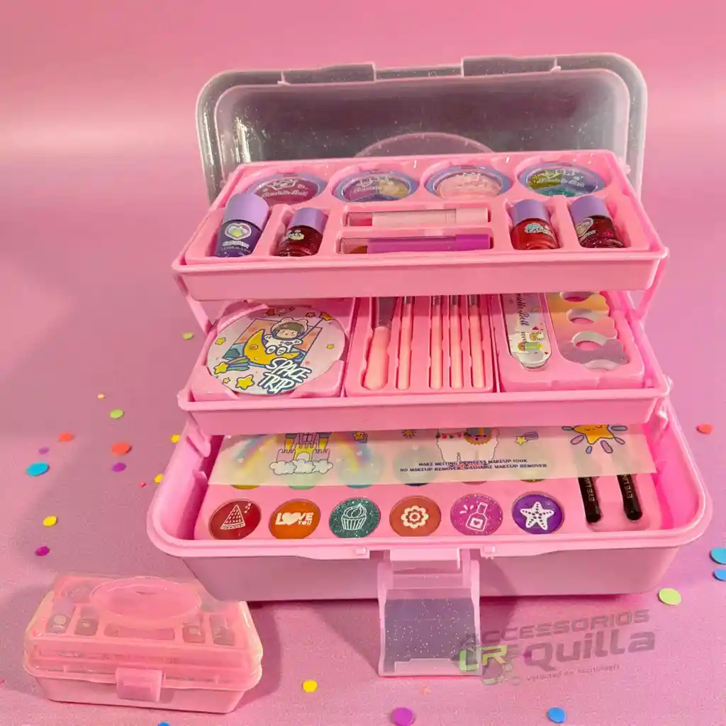 * Kit de maquillaje infantil para niñas. Amar la belleza es un instinto natural para todos, incluidos los niños. Nuestro set de maquillaje lavable está diseñado específicamente para niñas pequeñas, permitiéndoles explorar el mundo de la belleza de una forma segura y divertida. Proporciona una gran oportunidad para que sus pequeñas cultiven y mejoren su creatividad, imaginación, sentido estético y capacidad de aprendizaje. * 39 Piezas Real Niños Maquillaje Set. Nuestro maquillaje establece para los niños es adecuado para todos los 3-5-7-9-11 años de edad maquillaje de los niños, que contiene rubor, sombra de ojos, esmalte de uñas, barras de labios, espejo de maquillaje, borla de polvo, maquillaje cepillo, lima de uñas, separador de dedo del pie, lápiz de cejas, que se embalan en una maleta ordenada, que se puede plegar cuando no esté en uso, para que puedan organizar fácilmente los accesorios de maquillaje. * Materiales naturales seguros y lavables. Nuestro set de maquillaje infantil está fabricado con materiales seguros y de alta calidad para garantizar la salud y seguridad de sus hijos. Fabricado con materiales lavables, no tóxicos y a base de agua, este set de maquillaje es seguro e inofensivo tanto para pintar la cara como para esmaltar las uñas. No irrita la piel de los niños y no contiene ingredientes nocivos para ellos. * Estuche de maquillaje plegable y elegante para princesas. Nuestro set de maquillaje para niños no sólo contiene todo lo esencial para maquillarse, sino que también viene con un bonito e ingenioso estuche cosmético plegable de tres capas. Este estuche es como un cofre del tesoro lleno de magia que atrae a las niñas. Jugar a maquillarse no sólo puede satisfacer su curiosidad por los cosméticos, sino también hacer realidad su anhelo por el mundo de los cuentos de hadas. * Regalo ideal para su niña. Los cosméticos brillantes y coloridos aportan diversión y sorpresas sin fin a los niñas, al tiempo que fomentan el desarrollo de su estética, imaginación, creatividad, capacidad de comunicación y confianza en sí mismos. Pueden representar diferentes papeles y crear su propia imagen única a través del maquillaje, lo que les hace más animados, seguros de sí mismos y expresivos. Medidas cerrado: 26cm ancho, 15cm alto, 14cm fondo.