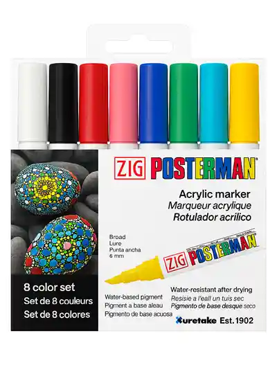 Marcador POSTERMAN ORIGINAL con calidad insuperable. Gracias a su tinta de alta pigmentación de base acuosa, alta opacidad, resistente a la luz, inodoro y no toxico ya que no contiene xileno, Es un marcador adecuado para varias superficies como: papel, globos, plástico, madera, vidrio, metal. Su punta de 6mm permite dibujar una gran variedad de diseños. Alucina con la variedad de colores para asombrar a tus clientes con los diseños mas exclusivos de tarjeterías, Expresión social y Marcado de globos.