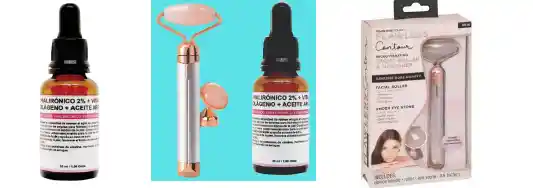 * Masajeador Flawless: El rodillo facial está diseñado para ayudar a estimular la circulación, promover la producción de colágeno y ayudar a reducir la aparición de líneas finas y arrugas. También incluye una presión debajo de los ojos que ayuda a reducir los ojos hinchados y las ojeras.* Suero Coctel facial antiedad: compuesto por ácido hialuronico al 2%, aceite de argan, vitamina E y Colágeno, para uso tópico, con efecto hidratante, reafirmante, antiedad y antioxidante