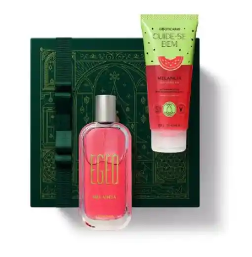 Kit O Boticário – Egeo Melancia: Desodorante Colonia + Gel Hidratante Corporal Descubre la dulzura más fresca del universo Egeo con este kit especial de O Boticário, creado para quienes aman fragancias divertidas, jugosas y adictivas. Una combinación irresistible que envuelve la piel en una experiencia sensorial completa, vibrante y naturalmente deliciosa. Egeo Melancia – Desodorante Colonia Una explosión afrutada que despierta los sentidos desde la primera aplicación. Su salida mezcla melancia, melón y melocotón, creando un acorde jugoso y refrescante. En el corazón, la suavidad de la rosa se fusiona con la albahaca, aportando un contraste moderno y encantador. El fondo combina praliné y cedro, ofreciendo un toque dulce, cremoso y amaderado que se vuelve adictivo en la piel. Un aroma unisex, joven y lleno de buena energía, perfecto para quienes buscan un perfume dulce con frescura tropical. Gel Hidratante Corporal Egeo Melancia De textura ligera y rápida absorción, este gel hidratante deja la piel suave, nutrida y perfumada con la misma esencia deliciosa del perfume. Ideal para usar diariamente, potencia la fragancia del desodorante colonia y prolonga su duración. Una hidratación refrescante que convierte tu rutina en un ritual de placer. Perfecto para ti si… Te encantan los aromas dulces, frutales y veraniegos. Aprecias fragancias unisex y con personalidad. Quieres una experiencia completa de perfume + hidratación. Eres fan del universo Egeo y sus ediciones especiales.