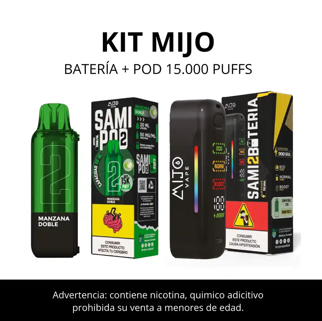 Kit Mijo Bateria Y Pod 15.000 Puffs Manzana Doble