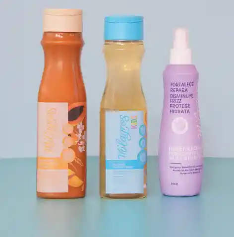 Este kit es ideal para los niños o para cabellos frágiles y delgados. Ayuda a fortalecer el cabello, nutrirlo y repararlo, promueve el crecimiento y ayuda a disminuir la caída. También a protegerlo de herramientas de calor como planchas y secadores.