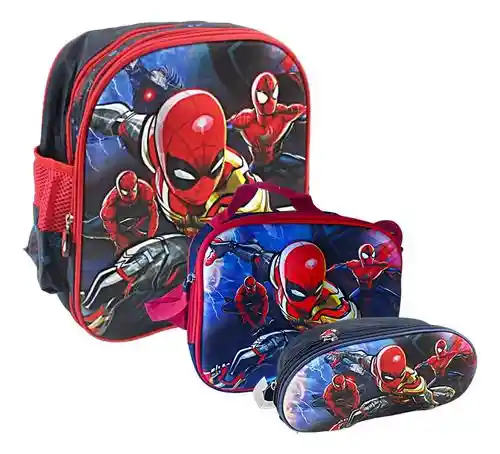 uevo y Útil Kit TODO EN UNO, Maleta y Mochila + Lonchera + Escolar Inspirada en el Diseño de SPIDERMAN, HOMBRE ARAÑA, de la Ultima Película, En Materiales Livianos pero también REFORZADOS para uso diario ESCOLAR, ¡Acolchados y de Tapa DURA! para mejor transporte del Niño/Niña