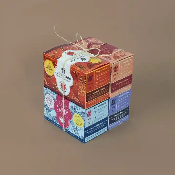 Con ingredientes naturales y combinaciones equilibradas, estas infusiones te acompañarán en cada momento difícil con opciones que regulan las emociones, brindan calma, y revitalizan el cuerpo. Incluye cuatro infusiones: -Infusión Mujer: Para la regulación hormonal, para acompañar los cólicos y los síntomas menstruales. -Infusión Cuerpo y Mente: Para equilibrar tus emociones, para brindarle al cuerpo vitalidad y calma. -Infusión Descanso: Acompaña tus horas de sueño con una infusión que da calma. -Infusión Manzana Canela: Llena de sabor cada día con una combinación frutal llena de bienestar. Llevamos todas las bondades de la naturaleza directo a tu taza. ¡Disfruta de un producto 100% natural, hecho con calidad y amor! *Cada caja trae un total de 20 bolsitas aromáticas. Viene con una tarjetica de mensaje especial.