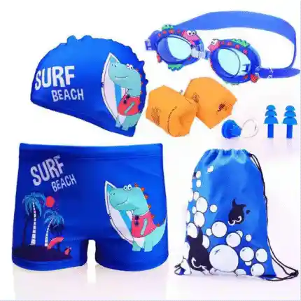 Traje de natación para un niño de 9 - 10 años aproximadamente. 🐬 Kit de Natación para Niño – Completo, Colorido y Seguro. Prepárate para disfrutar del agua con este kit de natación especialmente diseñado para niños. Ideal para días de piscina, clases de natación o vacaciones en la playa, este set incluye todo lo necesario para que los más pequeños naden con seguridad, comodidad y diversión. 🎒 Contenido del kit: 🧢 Gorro de natación suave y elástico, ideal para proteger el cabello. 🥽 Gafas de piscina con diseños divertidos, adaptadas para rostros infantiles, con protección UV y sistema antivaho. 💪 Flotadores para los brazos, perfectos para brindar confianza y seguridad en el agua. 🩳 Pantaloneta de baño cómoda, resistente al cloro y de secado rápido. 🎒 Bolsa de tela incluida para transportar todo el kit fácilmente. 👃👂 Tapones para nariz y oídos, ideales para evitar molestias durante la natación.