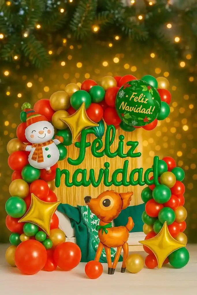 Decora tus espacios con el Kit Navideño MOMENTY de 79 piezas, perfecto para crear un ambiente festivo y elegante. Incluye globos rojos, verdes, dorados, estrellas, letrero “Feliz Navidad”, y figuras decorativas como muñeco de nieve y reno inflable. Material: Látex y foil de alta calidad Fácil de armar y reutilizable Ideal para hogares, oficinas o eventos Tener en cuenta: Los globos se envían desinflados. Los accesorios adicionales son decorativos y no están incluidos.