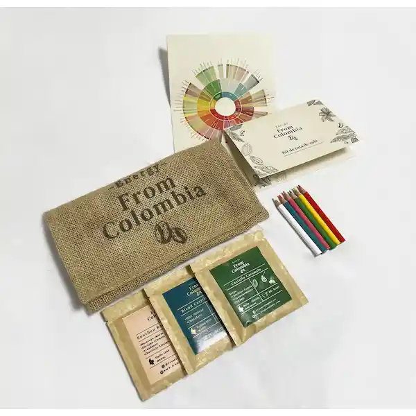 Incluye Instrucciones Para Catar Estuche de Fique Colores + Cafés de Diferentes Zonas Del País 3 Unidades