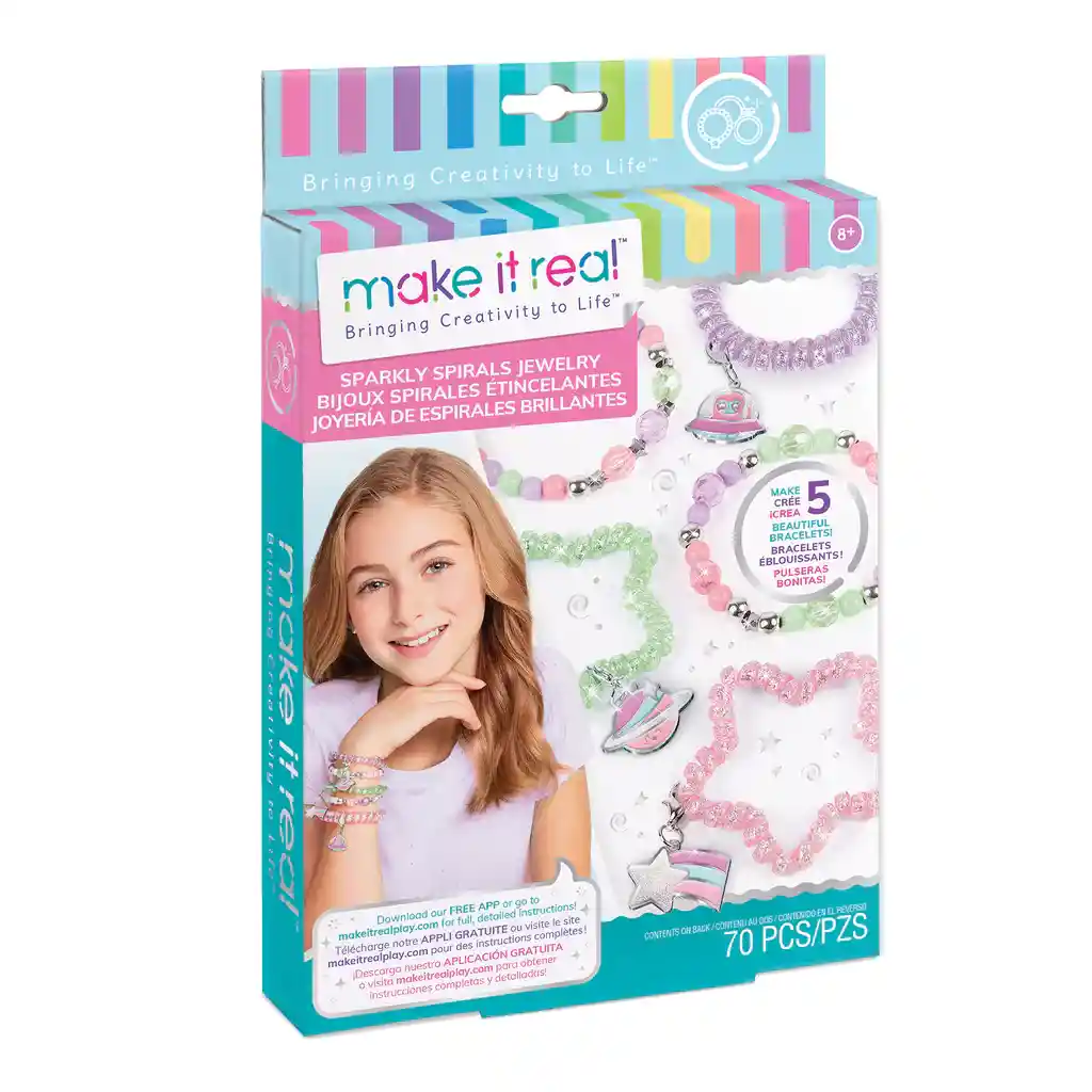 Empaque de regalo sin costo adicional, escríbenos al finalizar la compra. 8 años + Cree seis brazaletes en espiral brillantes en formas circulares y de estrella modernas con este kit de joyería de 30 piezas. El kit incluye: - 2 pulseras espirales en forma de estrella - 1 pulsera de bobina de forma redonda - 1 cuerda elástica de 1 metro - 36 cuentas de colores - 12 cuentas metálicas - 9 cuentas facetadas - 5 cuentas en forma de estrella - 3 encantos - 1 hoja de instrucciones Este Kit de pulseras desarrolla: -Habilidades motoras finas a través del uso y la coordinación de pequeños músculos en la muñeca, la mano y los dedos, podrán realizar actividades como escribir, dibujar, pintar y mucho más. -Habilidades visuales que se centran en la coordinación ojo-mano y la percepción visual necesaria para tareas como el corte, el esbozo de una imagen bidimensional de un objeto 3D y la capacidad de recordar una imagen vista anteriormente. -Habilidades cognitivas que reflejan la capacidad de prestar atención, razón, encontrar soluciones a problemas, analizar datos, evaluar y hacer comparaciones.