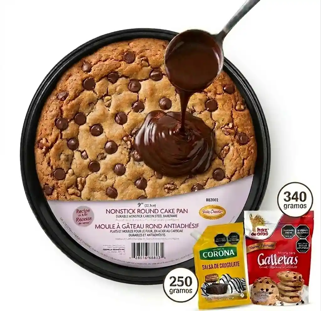 ¿Alguna vez has soñado con ese postre de restaurante: una galleta gigante, tibia, servida en una sartén de hierro y bañada en chocolate fundido? ¡Deja de soñar y hazlo realidad! Este kit exclusivo te da todo el poder. Comienza con una galleta de chip de chocolate Haz de Oros premium de 340g, repleta de trozos de chocolate y nueces crujientes. Colócala en el molde de pastel redondo antiadherente de 9 pulgadas de Betty Crocker y hornea hasta que esté dorada y fragante. Pero el gran final es tuyo: vierte una cascada de 250g de espesa y brillante salsa de chocolate Corona sobre tu creación tibia. ¡Es la definición de 'indulgence' y te lo traemos a tu puerta con Rappi! Perfecto para un plan familiar, una cita romántica o simplemente para darte el gusto que te mereces. Lo que incluye este Kit de Lujo: 1x Molde de Pastel Redondo Antiadherente Betty Crocker de 9 pulgadas (22.5cm): El tamaño perfecto para una galleta gigante de sartén. 1x Paquete de Salsa de Chocolate Corona (250 gramos): La cobertura de chocolate más espesa y deliciosa. 1x Paquete de Galletas Haz de Oros Chocolate Chip (340 gramos): El sabor clásico con chips de chocolate
