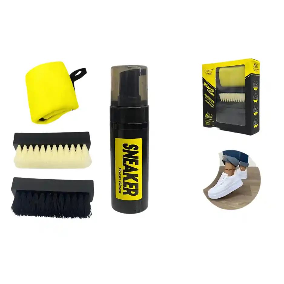 Mantén tus sneakers siempre impecables sin complicaciones. Este Kit Premium de Limpieza fue diseñado para los verdaderos amantes del estilo, que entienden que la imagen empieza desde los pies. Compacto, portátil y muy completo, es el aliado perfecto para limpiar tus tenis en casa, la oficina, la universidad o incluso de viaje. Con este kit podrás remover suciedad ligera y agresiva, proteger materiales delicados como la gamuza y devolver el brillo original de tu calzado en minutos. - Incluye: espuma limpiadora 150ml, cepillo cerdas suaves, cepillo cerdas duras y toalla de microfibra. - Práctico y portátil: caja premium de 19x5x17 cm, ideal para viajes, oficina o universidad. - Fácil de usar en 5 pasos: aplica, cepilla, seca y listo. - Ideal para gamuza, sneakers y tenis deportivos o casuales. - Resultados visibles al instante: devuelve brillo y frescura a tu calzado. - Diseñado para sneaker lovers que cuidan su estilo y su imagen.