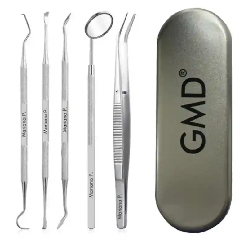 Kit odontológico completo diseñado para procedimientos básicos de inspección e higiene bucal. Incluye 5 herramientas dentales esenciales fabricadas en acero inoxidable de grado médico, ideales tanto para estudiantes de odontología como para profesionales de la salud bucal. El set se presenta en un estuche metálico compacto y resistente, que asegura la protección, esterilización y transporte seguro del instrumental. ✅ Características principales: Material de alta calidad: Acero inoxidable de grado médico, resistente a la corrosión. Instrumental esterilizable y reutilizable: Compatible con esterilización por vapor o ETO. Estuche metálico resistente: Protege los instrumentos y facilita su almacenamiento y transporte. Diseño ergonómico y preciso: Facilita una manipulación segura y cómoda. Uso versátil: Ideal para clínicas odontológicas, prácticas estudiantiles y uso personal profesional.
