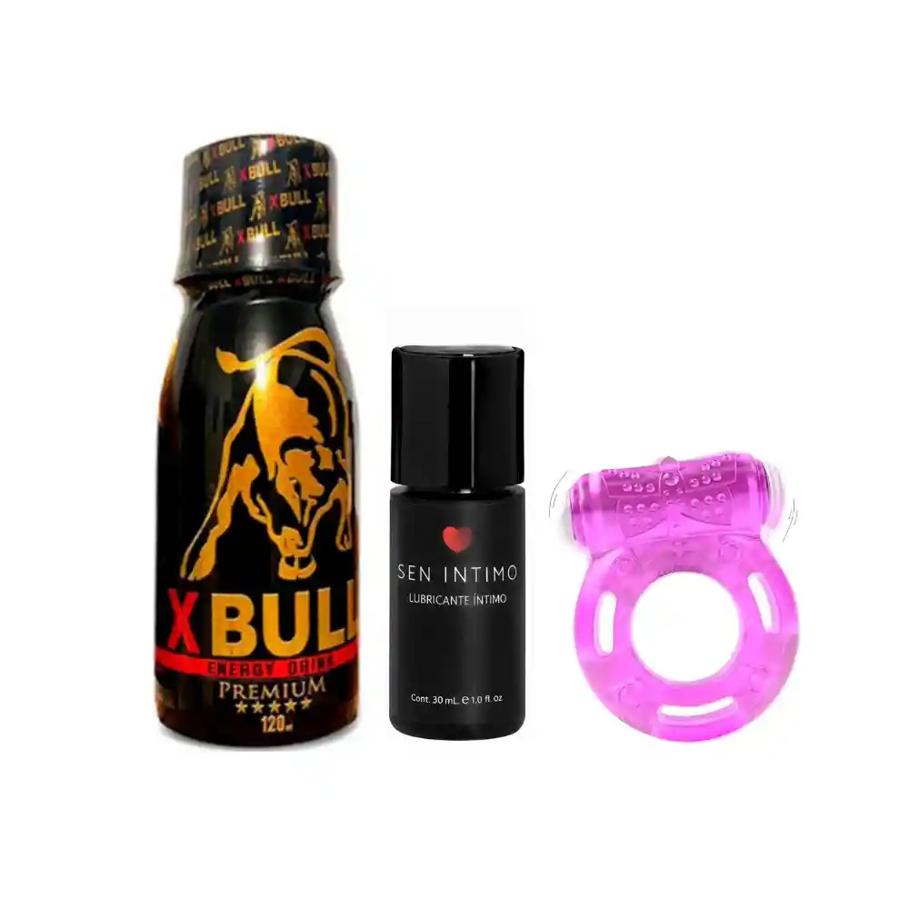Combina un anillo vibrador retardante, el vigorizante líquido X-Bull y un lubricante íntimo sorpresa de Sen Íntimo, creando el equilibrio perfecto entre resistencia, estimulación y conexión. El anillo vibrador en silicona suave y ajustable ayuda a mantener la erección y prolongar el encuentro, incorporando un modo de vibración que intensifica las sensaciones tanto para uso individual como en pareja (diámetro interno 2,2 cm; externo 4,5 cm; funciona con 3 pilas LR44; resistencia IPX4 a salpicaduras; no usar por más de 30 minutos continuos). Se complementa con X-Bull Vigorizante Natural Líquido 120 ml, bebida energizante a base de borojó, chontaduro, noni, uva y vitaminas B1, B2, B6 y C, con cobre y zinc, formulada para optimizar el rendimiento físico, combatir la fatiga, mejorar el estado de ánimo y aumentar el deseo sexual en hombres y mujeres (Registro Invima: SD2010-0001488). El kit se completa con un lubricante íntimo sorpresa Sen Íntimo —sensación caliente, multiorgasmo o neutro— que aporta suavidad, comodidad y mayor estimulación. Una combinación pensada para disfrutar encuentros más intensos, duraderos y llenos de energía.