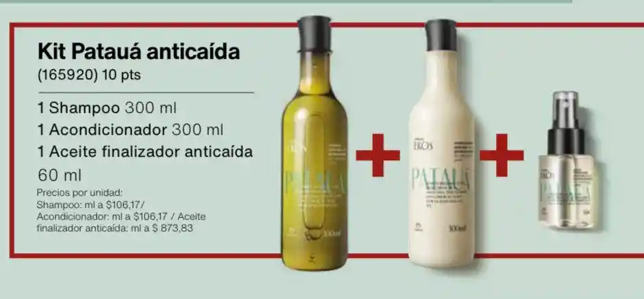 1 shampoo Pataúa. 1 acondicionador Pataúa. 1 Aceite finalizador anticaida pataúa.