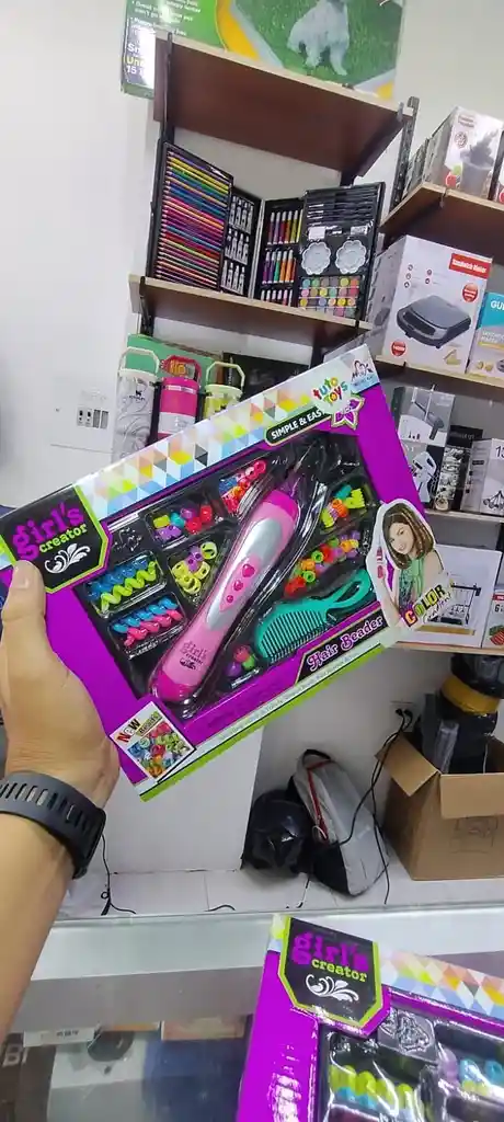 Hermoso kit para fabricar de forma original y artesanal tus peinados gracias a sus herramientas, pondrán a prueba tu destreza, habilidad y estrategia para crear ,siendo un perfecto regalo para niñas. Ficha Técnica: Material : Escarcha - Pedreria - Cuencas - Herramienta para peinados Medidas: Alto 21 cm x Ancho 29 cm x Profundidad 5,5 cm Edad recomendada: + 6 años