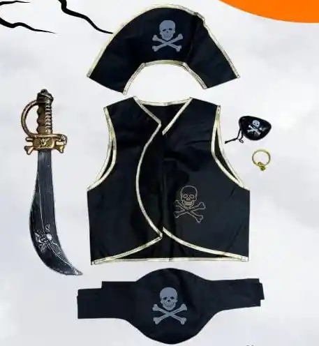 Kit de pirata para cosplay o disfraz de Halloween, que incluye chaleco, espada, parche y accesorios temáticos. Este conjunto te permite transformarte en un auténtico pirata, con un chaleco de estilo aventurero, una espada de juguete, un parche clásico para el ojo y otros detalles que completan el look. Perfecto para fiestas de disfraces, eventos temáticos o juegos de rol, este kit añade diversión y autenticidad a cualquier celebración.