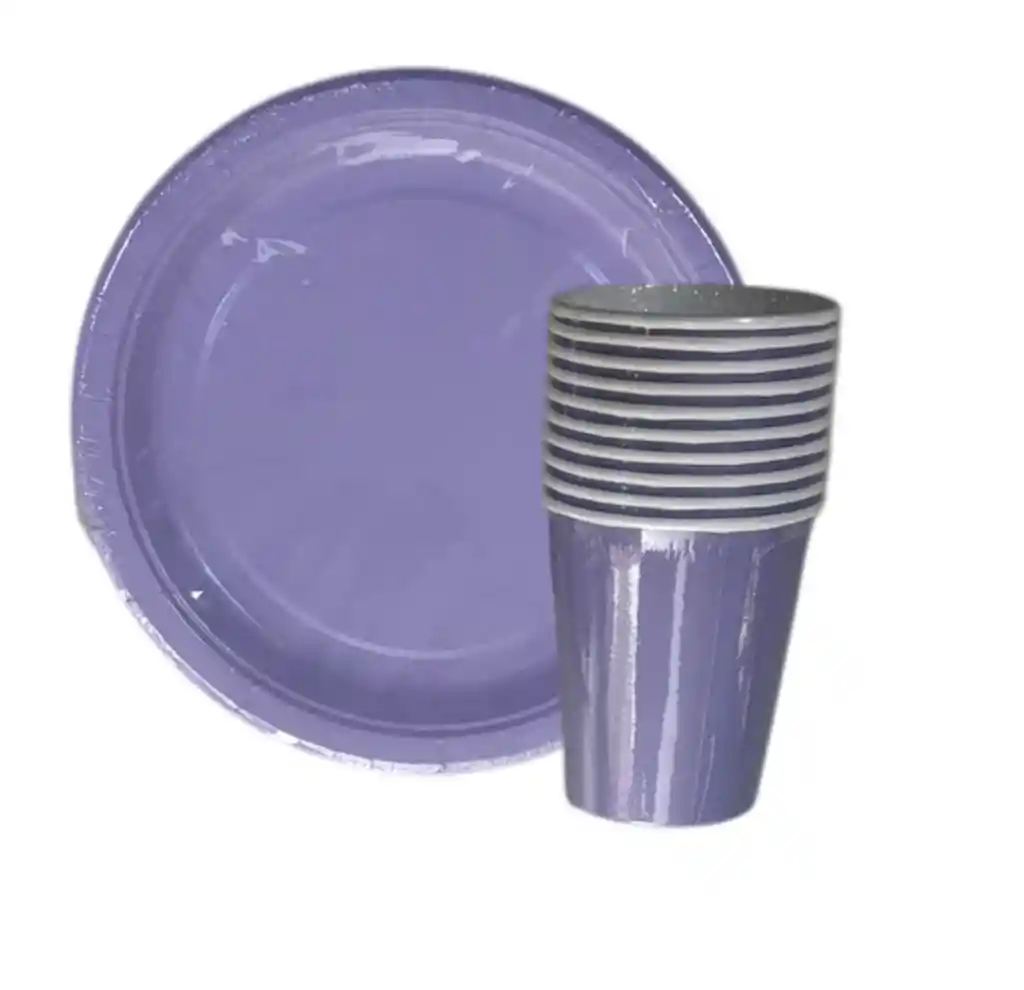 Kit de platos y vasos Lilas — incluye 10 platos y 10 vasos del mismo color. Perfecto para fiestas, reuniones y eventos. Resistente, práctico y listo para usar en cualquier ocasión." Incluye 10 platos + 10 vasos. Material resistente y ligero. Ideal para reuniones, cumpleaños y celebraciones. Fácil de transportar y usar.