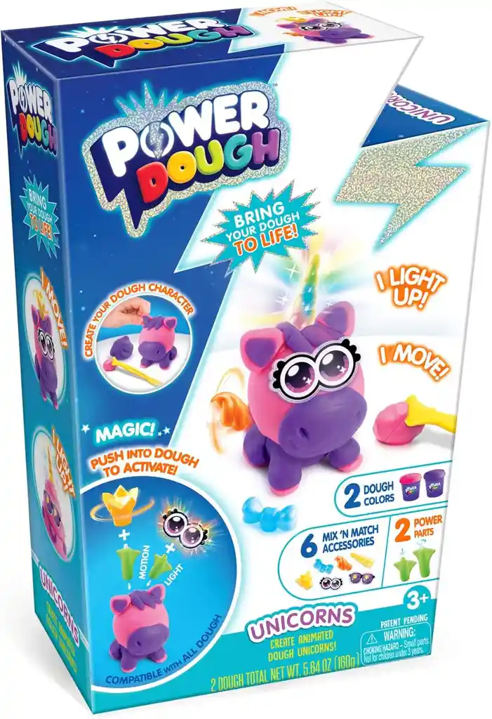 Kit Power Dough Masa Interactiva con Luz y Movimiento Incluye: - 6 accesorios intercambiables (ojos, bocas, cuernos y más) - 2 piezas de poder con baterías (movimiento, luz y/o sonido) - 2 masas de colores - Instrucciones de uso ¡Da vida a tu masa y crea personajes increíbles que se mueven, hablan y se iluminan! Con el Kit Power Dough, los niños pueden crear divertidos monstruos o unicornios animados usando masa especial conductora que activa los accesorios electrónicos. Solo debes moldear, presionar la masa en las piezas de poder… ¡y la magia comienza! Características: - La masa conduce la energía para activar movimiento, luz y sonido - Accesorios mix & match para infinitas combinaciones - Compatible con toda la línea Power Dough - Ideal para fomentar la creatividad y el juego imaginativo Información importante: Apto para niños de 3 años en adelante