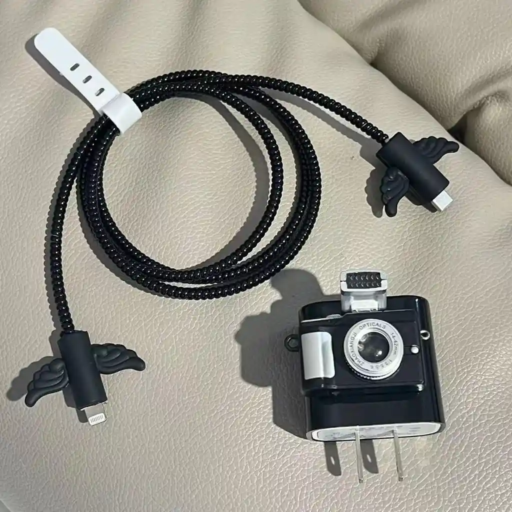 Te permite proteger el cubo del cargador y los extremos de tus cables de forma que las conexiones no se doblen, deterioren o fracturen. Está hecho en silicona de alta calidad y te permite ajustarlo fácilmente a cualquier cable Lightning. Importante: Compatible con cargadores salida Tipo C - 20W (Ver Foto) • Incluye: 1x protector para el cubo. 2x protector para el cable. 1x Resorte para proteger el cable (El color puede ser diferente al mostrado en la foto). 1x Organizador de cable. *No incluye cargador ni accesorios adicionales. Importante: Debido a la diferencia de pantallas y efecto de la luz, el color real del artículo puede ser ligeramente diferente al color mostrado en las imágenes.