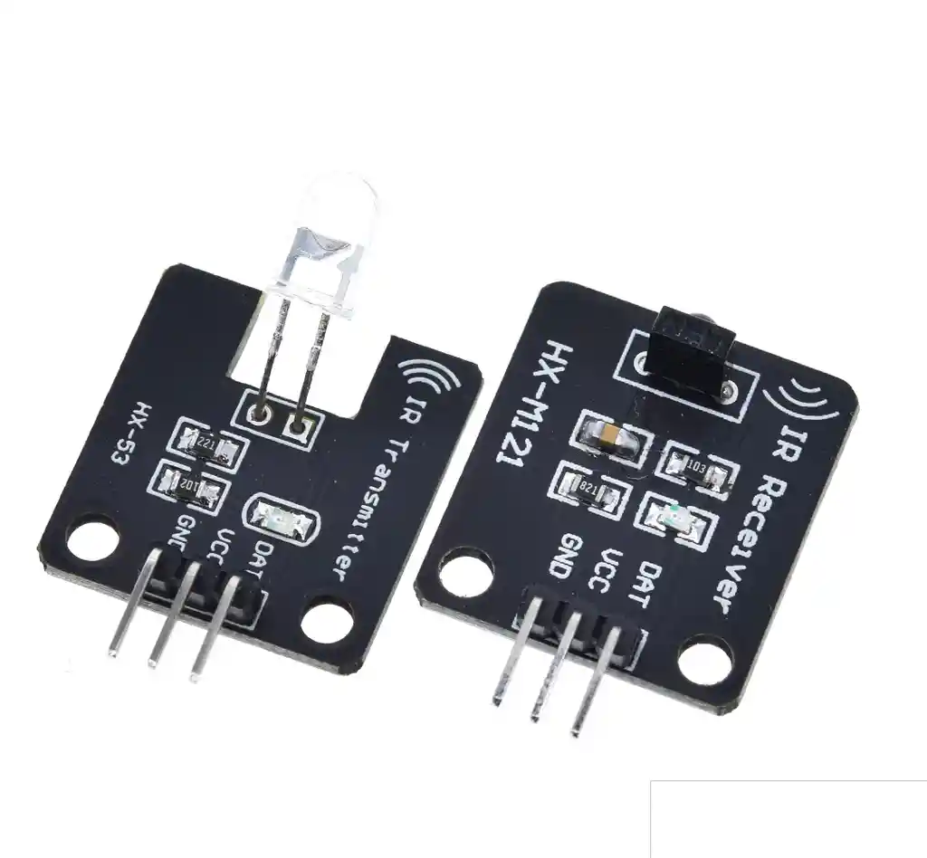 Voltaje de suministro: 5 V Entorno de trabajo: -25 ~ + 85 C Temperatura de almacenamiento: -30 ~ + 100 C Longitud de onda: 940nm Tamaño del modulo: 13,7 mm x 27,8 mm Peso del modulo: 1 g Tipo de señal: digital Longitud de onda central infrarroja: aproximadamente 850nm-940nm angulo de emision de infrarrojos: unos 20 grados Distancia de emision de infrarrojos: aproximadamente 1,3 metros (5 V 38 kHz) Modulos de receptor de infrarrojos. 1. Adopte el receptor de control remoto 1838 con alta sensibilidad 2. Voltaje de funcionamiento 5 V 3. tipo de salida: salidas digitales 4. Hay 2 orificios de fijacion para una facil instalacion. Apertura 3,1 mm LA COMPRA INCLUYE: 1X SET INFRARROJO TRANSMISOR Y RECEPTOR