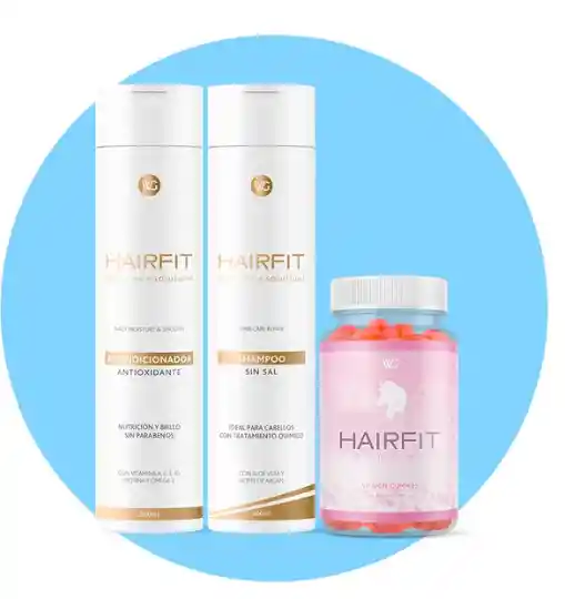 Este kit incluye 3 productos: SHAMPOO REPARADOR: Su fórmula enriquecida con Vitamina E, Proteína de Leche y Aceite de Argán, libre de sal y parabenos, limpia, nutre y repara el cabello desde la raíz hasta las puntas. Es especial para cabellos maltratados y, gracias a la acción antioxidante de la Vitamina E, evita su envejecimiento natural. Adecuado para todo tipo de pelo. Registro FDA número: 14490412812. Registro sanitario INVIMA: NSOC80545-17CO. ACONDICIONADOR ANTIOXIDANTE: Su fórmula acondicionadora aporta Vitaminas A, E, C, Provitamina B5, Biotina y Omega 3 que nutre, repara y acondiciona cada pelo. Igualmente otorga elasticidad evitando su caída y dejándolo con suavidad y brillo. Su acción antioxidante protectora es adecuada para todo tipo de pelo. Registro FDA número: 48282122954. Registro sanitario INVIMA: NSOC93018-19CO. VITAMINAS EN GOMITA: Las gomitas HAIRFIT para un cabello más largo y sin caída fueron creadas para nutrir tu cabello de adentro hacia afuera con un delicioso sabor a fresa y las calorías de una porción de coco. Cada gomita contiene una potente mezcla de vitaminas, minerales y aminoácidos que son formulados para que obtengas los resultados que quieres ¡RÁPIDAMENTE!... Su fórmula avanzada es imprescindible para ese cabello fuerte, largo y abundante que deseas. Sus componentes también actúan en tu piel y uñas. ESTAS VITAMINAS NO TIENEN RESTRICCIÓN DE USO O EDAD. Pueden consumirse en estado de embarazo o lactancia sin ningún problema. Sin embargo, no es un producto vegano. Este producto se recomienda para prevenir la caída de cabello o tratar su caída leve. Registro FDA número: 25481115901. Registro sanitario INVIMA: RSAD04I13912.