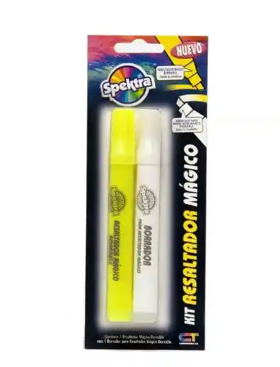 Contiene un resaltador borrable y un marcador borrador de resaltador borrable. usa el resaltador borrable para destacar textos escritos o impresos sobre diferentes tipos de papel como: bond, periódico, fax, copia y esmaltado, elimina lo resaltado con el marcador borrador. la punta de tipo cincel permite trazar líneas de tres grosores diferentes. no es tóxico.