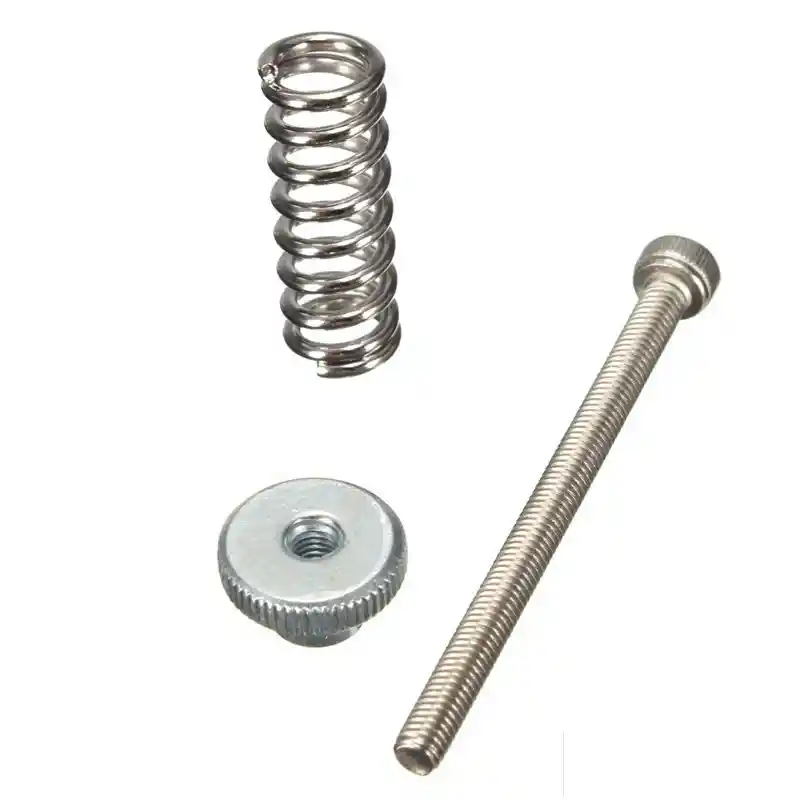 KIT TORNILLOS PARA NIVELACION CAMA CALIENTE O BASE IMPRESORA 3D. TIPO ROSCA: M3 LONGITUD: 40mm LA COMPRA INCLUYE: 4 x tornillos 4 x resortes 4 x tuercas
