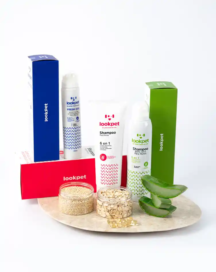 El Kit Ritual de Cuidado Lookpet reúne tres productos diseñados para transformar la rutina de higiene en una experiencia sensorial que fortalece el vínculo entre tú y tu perro. Incluye: nuestro Shampoo 6 en 1 para Adultos, que limpia profundamente, hidrata y suaviza el pelaje desde la raíz. El Shampoo Baño Seco 6 en 1, ideal para mantener la frescura entre baños, elimina impurezas sin necesidad de agua. Y para completar el ritual, el Spray Ultra Acondicionador 6 en 1, que desenreda, hidrata y deja una fragancia delicada y duradera. Tres pasos. Una experiencia. Un cuidado que se siente en cada caricia.