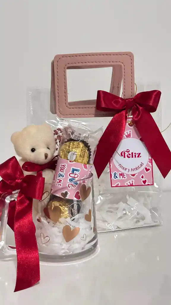 ¡Celebra el amor y la amistad con nuestro Kit Romántico! Este regalo está lleno de dulzura y afecto. Incluye: Una hermosa taza de vidrio con detalles de corazones. Chocolates premium para endulzar el día. Un tierno osito de peluche, el cómplice perfecto para abrazar. Todo empacado con mucho amor para esa persona especial. ¡Pide el tuyo y dile lo que sientes! Si deseas personalizar tu regalo antes de comprar te recomendamos comunicarte al WhatsApp 3102078219 para ultimar detalles. Para que tu regalo llegue con la tarjeta perfecta y el mensaje ideal, te agradeceríamos especificar el motivo de su obsequio al realizar su pedido (cumpleaños, aniversario, amor, graduación, etc.). ¡Así podremos hacer su detalle aún más especial! 💖
