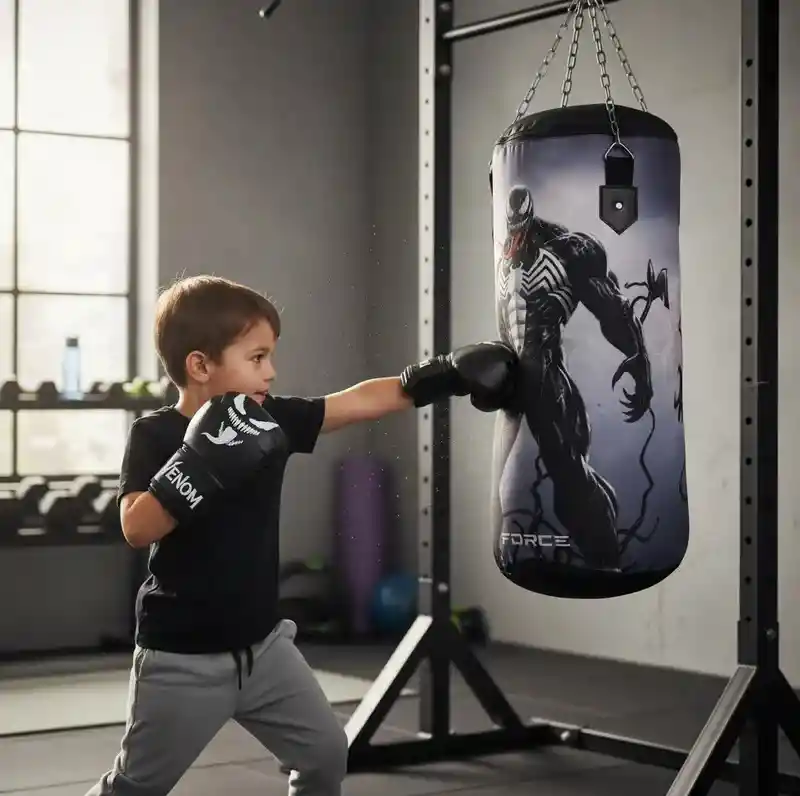 KIT SACO BOXEO + GUANTES INFANTIL Especialmente diseñado para entrenar y ejercitar el cuerpo de los niños y niñas. Permite incrementar la coordinación con la vista y adquirir una mejor musculación en la parte superior de su cuerpo. ¡Despierta el superhéroe que lleva dentro tu pequeño con este Kit de Boxeo Infantil! Este kit incluye un saco de boxeo de 50 cm de alto y 69 cm de diámetro, adornado con imágenes de superhéroes para hacer de cada entrenamiento una aventura emocionante. Además, el kit viene con un par de guantes de boxeo infantiles con ajuste por velcro, diseñados para proporcionar un ajuste seguro y cómodo. Guantes están rellenos con mota de algodón, el saco se aconseja rellenar con material textil, para darle suavidad, garantizando una experiencia de golpeo suave y seguro. CARACTERISTICAS: - Ligero y Duradero. - Saco de Boxeo Personalizado. - Par Guantes de Boxeo Infantiles: Proporcionan un ajuste seguro y cómodo para las pequeñas manos de tu superhéroe. (Relleno con mota de algodón). - Peso saco: 2,5 Kilos. - Peso guantes: 400 Gramos (PAR). - Saco para colgar a techo (SIN RELLENO). - Material: Lona industrial sublimada. - Edad: de 4 a 10 años. DISTRIBUIDOR AUTORIZADO Envíos a nivel nacional ONE ZONE SPORT NIT: 901.451.888-6