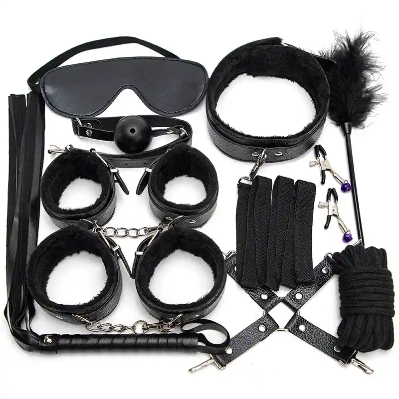 Contiene las 10 piezas que se ven en la imagen. Sorprende a tu pareja con este a kit fetiche de 10 piezas! Este kit es perfecto para dejar a tu pareja con la boca abierta y sorprender de la forma que más le gusta, ten una noche llena de placer y dale lo que le hace falta a tu vida sexual, y ¿Por qué no complementar este kit con un seductor disfraz? Es perfecto para comenzar en el Bondage.