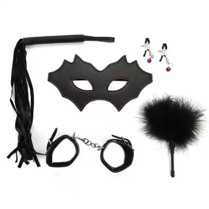 KIT SADO SADOMASOQUISMO BONDAGE BDSM 5PIEZAS Deja volar tu mente y has realidad tus más profundos deseos. Si quieres someterte a la voluntad de tu Ama o Amo este el es detalle que te hace falta para iniciar una sesión de Sadomasoquismo. ¡Te ofrecemos el mejor Kit de 5 piezas de Juguetes Sexuales para adultos! Dale un toque a tu vida sexual con el Kit para sexo Bondage BDSM Sado Dominación. Estilo Christian Grey Sumisa - Amo. El conjunto de kit de restricción de Bondage de 5 piezas cumple con todas tus fantasías sexuales con tu amante. EL REGALO PERFECTO PARA PAREJAS. La confianza y conexión sexual llegaran a niveles donde una sola caricia te llevara por lo alto llenando sus encuentros de placer inigualable. Material sintético de alta calidad. Piezas ajustables e intercambiables a tu gusto, un juego perfecto para experimentar nuevas sensaciones con tu pareja sexual. La adrenalina y erotismo que puede lograr con este kit es increíble, su extraordinaria potencia hace de este juguete erótico la mejor herramienta para explorar y disfrutar de satisfacer los más profundos deseos. Cómodo y seguro, materiales suaves que permiten jugar con las texturas y agudizar la estimulación y a su vez de gran resistencia para todo tipo de juegos. CARACTERÍSTICAS DESTACADAS 1) Antifaz. 2) Látigo. 3) Pluma estimuladora. 4) Esposas para muñecas. 5) Pinzas para pezones con intensidad ajustable.