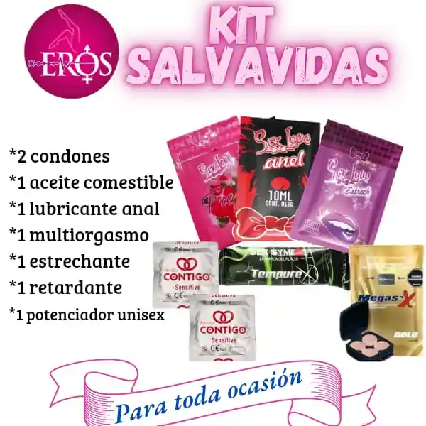consta de : 2 condones , 1 aceite comestible,1 lubricante anal, 1 multiorgasmo, 1 estrechante , 1 potenciador