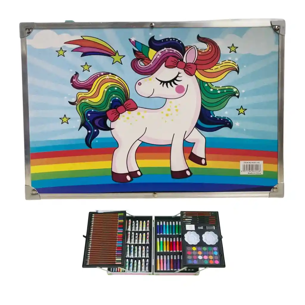 ***¡¡BIENVENIDO A ATARISTATION!!*** 1. CARACTERISTICAS DE LA COMPRA: 1.1 Esta compra incluye: - 1 Kit Set De Arte Dibujo Maletin Metalico 145 Piezas 1.2 Características del producto: Inspira la creatividad de los más pequeños con este completo set de arte de 145 piezas, ideal para niños, estudiantes y cualquier persona que disfrute dibujar, colorear y explorar nuevas técnicas artísticas. Incluye una amplia variedad de herramientas para crear sin límites: colores, marcadores, crayones, lápices y accesorios básicos que permiten desarrollar habilidades, practicar en casa o utilizar en proyectos escolares. Todo viene organizado en un maletín metálico resistente, fácil de transportar y perfecto para mantener cada pieza en orden. Su diseño portátil lo convierte en una excelente opción para llevar a clases, viajes o actividades recreativas, asegurando que el niño siempre tenga su material listo para usar. Es un regalo ideal para fomentar la imaginación, la concentración y el gusto por el arte. Perfecto para niñas y niños que aman dibujar y expresarse a través del color. ¡Un kit completo, práctico y listo para acompañar cada nueva creación
