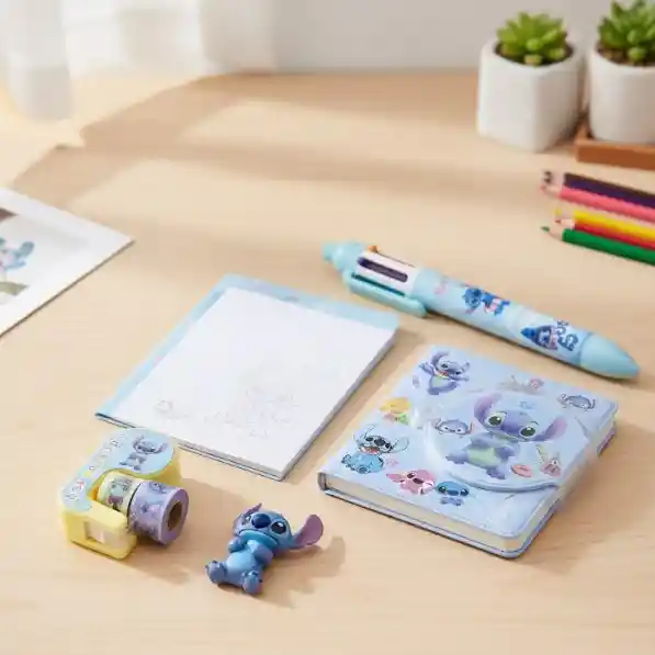 Kit Set De Papelería Infantil Con Diseño De Stitch Incluye: Libreta , Esfero Multicolores , Cinta Decorada De Stitch y Resaltador