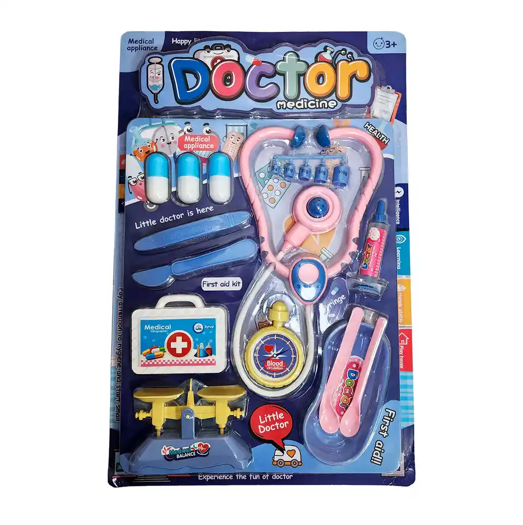 ¡Es hora de un chequeo! Prepara tu consultorio y atiende a todos tus pacientes, desde familiares hasta los juguetes más queridos, con nuestro completísimo Set de Doctor. Este fantástico kit de juego tiene todo lo que los pequeños médicos necesitan para diagnosticar y curar, incluyendo un estetoscopio, un maletín de primeros auxilios, jeringa, pinzas, una balanza, y muchos otros instrumentos y medicinas de juguete. Es la manera perfecta de inspirar horas de juego imaginativo y empático, ayudando a los niños a familiarizarse con las herramientas médicas y a desarrollar su creatividad mientras aprenden a cuidar de los demás. ¡Conviértete en el héroe del día y regala horas de diversión sana y educativa con este set esencial para todo futuro doctor! Ficha Técnica: Dimensiones del empaque : 45 cm x 29 cm x 3 cm Material : Plástico ABS Edad Recomendada : + 3 Años Certificado de conformidad: E5-0359-2021 Referencia: 666-430 ** _Para defectos de fábrica o retractos: \_Por favor revise el producto apenas lo reciba y antes de usarlo. No aplican ley de retracto o defectos de fábrica luego de usar el producto. Se manejan máximo 5 días para reportar defectos de fábrica (por ejemplo, producto funciona mal, piezas faltantes, rotas, etc). Para hacer efectiva la devolución el producto debe devolverse con el empaque original, el cual debe estar en buen estado, incluir todos los documentos y las partes completas y sin daños.