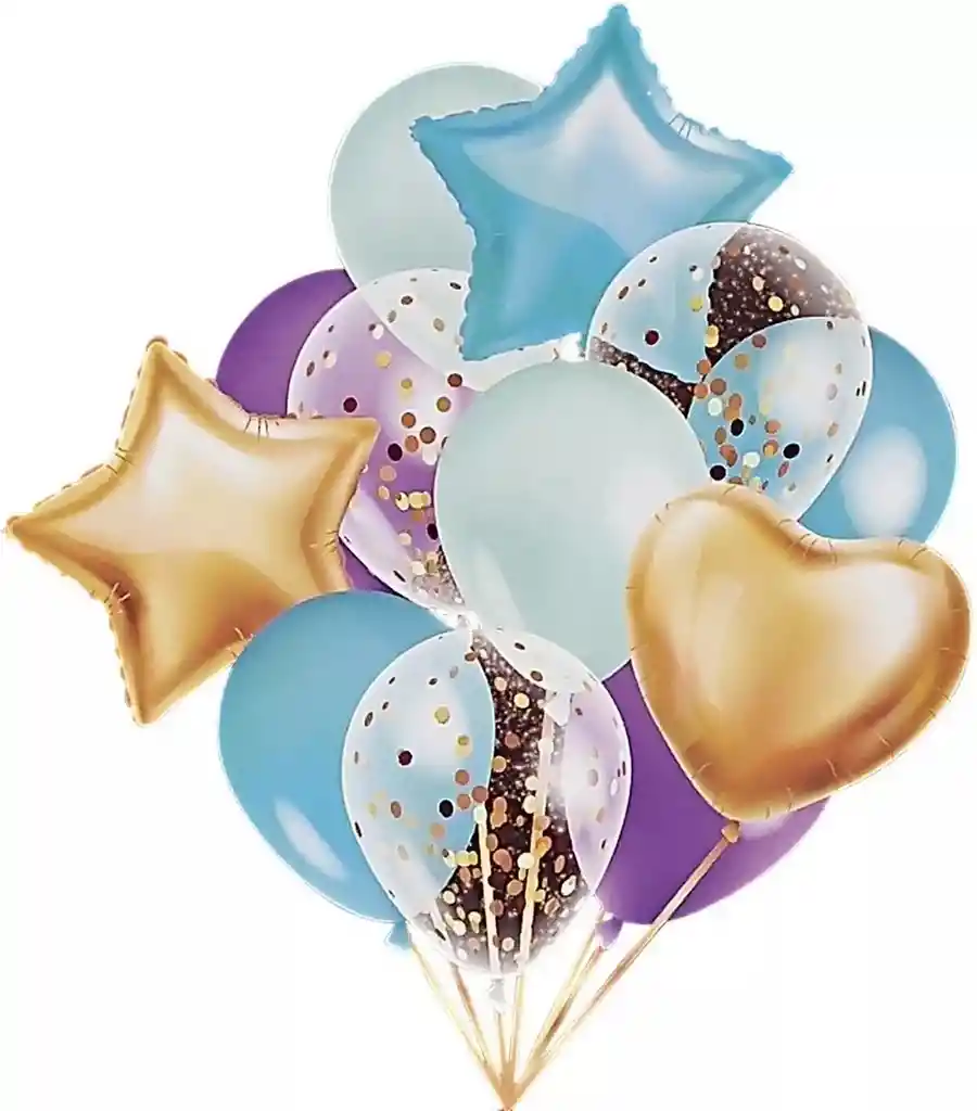 ¡Celebra tus eventos con estilo y alegría con nuestros globos de colores llamativos y elegantes! Nuestros globos son el complemento perfecto para cualquier ocasión, desde fiestas de cumpleaños, bodas, Babyshower hasta eventos empresariales y festivales comunitarios. Disponemos de una amplia variedad de colores vibrantes y elegantes, para que puedas elegir la combinación perfecta que se adapte a tu evento y personalidad. Todos nuestros globos son de alta calidad y durabilidad, garantizando que mantendrán su forma y color durante todo el evento. /// La empaque contiene 12 piezas donde están los globos de látex así como se aprecia en la fotografía /// Ficha Tècnica: Dimensión Globo con confeti: 30 cm Dimensión Globo : 30 cm Dimensión Globo Estampado: 45 cm x 45 cm Dimensión Globo Estrella : 45 cm x 45 cm Material: Aluminio papel metalizado y latex Para defectos de fábrica o retractos: Por favor revise el producto apenas lo reciba y antes de usarlo. No aplican ley de retracto o defectos de fábrica luego de usar el producto. Se manejan máximo 5 días para reportar defectos de fábrica (por ejemplo, producto funciona mal, piezas faltantes, rotas, etc). Para hacer efectiva la devolución el producto debe devolverse con el empaque original, el cual debe estar en buen estado, incluir todos los documentos y las partes completas y sin daños.
