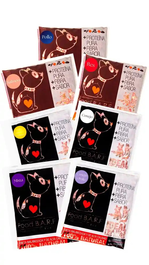 Kit sin snacks (Pollo, mixta, res, conejo, salmón, pollo, salmón y espinacas) 500gr En Food BARF, entendemos que la alimentación de tu perro es clave para su salud y bienestar. Por eso, hemos diseñado nuestros Kits Semanales de Dieta BARF, con recetas variadas que incluyen diferentes proteínas y una combinación equilibrada de ingredientes frescos y naturales. La variedad es fundamental para asegurarte de que tu mascota reciba todos los nutrientes esenciales que necesita para mantenerse saludable, y nosotros te facilitamos todo para que tú solo te preocupes por disfrutar del tiempo con tu perro. ¿Qué incluye nuestros Kits Semanales de Dieta BARF? Cada semana, recibirás un kit completo con porciones frescas y equilibradas de dieta BARF, que incluyen: Proteínas variadas: Para ofrecer a tu perro una fuente diversa de aminoácidos esenciales, ácidos grasos saludables, hierro, zinc y otros nutrientes clave que apoyan la salud muscular, la energía y el bienestar general. Verduras frescas y nutritivas: Llenas de vitaminas, antioxidantes y fibra que promueven una digestión saludable, un sistema inmune fuerte y un pelaje brillante. Vísceras frescas: Corazón, hígado y riñones, que proporcionan nutrientes concentrados esenciales para la función hepática, el sistema digestivo y la salud general de tu perro. Beneficios de nuestros Kits Semanales de Dieta BARF: Variedad para una nutrición completa: La combinación de diferentes fuentes de proteínas, verduras y vísceras en cada semana asegura que tu perro reciba una amplia gama de nutrientes, vitaminas y minerales necesarios para mantener su salud y vitalidad a largo plazo. Comodidad para los dueños: Olvídate de las complicaciones al planificar las comidas de tu mascota. Nuestros kits están diseñados para hacer tu vida más fácil, con porciones ya equilibradas y listas para servir. Solo tienes que abrir el kit y alimentar a tu perro con lo mejor de la naturaleza. Fomento de la salud a largo plazo: La variedad en las proteínas no solo mantiene a tu perro satisfecho, sino que también favorece un desarrollo muscular adecuado, una piel y pelaje saludables, y una digestión óptima. Práctico y sencillo: Variedad necesaria para facilitar la preparación de las comidas de tu mascota. ¡La comodidad y la calidad van de la mano! ¿Por qué elegir los Kits Semanales BARF de Food BARF? Nos enorgullece ofrecer productos de la más alta calidad. Todos nuestros ingredientes son seleccionados cuidadosamente, frescos y locales, para garantizar que tu perro reciba solo lo mejor en cada porción. Nos comprometemos a seguir estrictos estándares de calidad en cada etapa de producción, utilizando métodos seguros y naturales para mantener intactos los nutrientes esenciales en cada receta. ¡Haz que tu perro disfrute de una alimentación variada, balanceada y deliciosa con nuestros Kits Semanales de Dieta BARF y facilita tu rutina diaria mientras cuidas su salud!