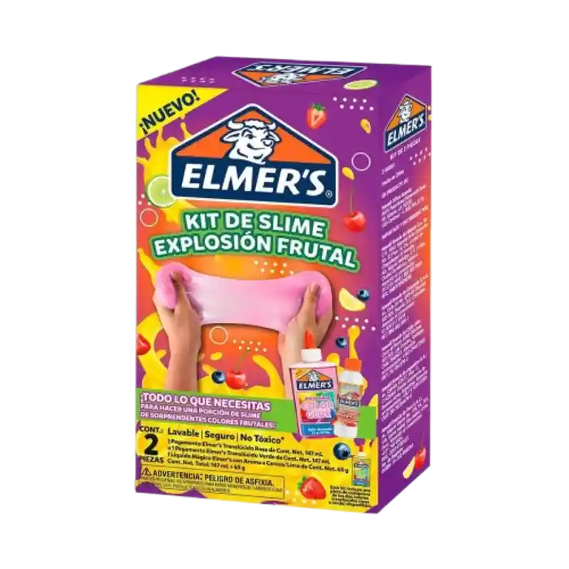 Por tu compra recibe: Kit Slime Elmer's Plastilina Explosion Aroma Frutal Para Niños - Niñas Cantidad: 1 Caja Contenido cada caja: 2 piezas (1 pegamento Rosa / Verde + 1 liquido magico Aroma Cereza / Limon) Lavable - Seguro - NO toxico Calidad 100% garantizada Compra seguro