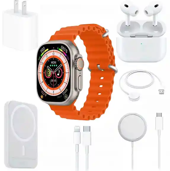 Combo X8 – Todo lo que Necesitas en un Solo Kit Tecnológico Haz tu vida más fácil y eficiente con el Combo X8, el kit definitivo para mantener tus dispositivos cargados, conectados y listos para usar en todo momento. Perfecto para usuarios activos y modernos. Contenido del combo: Smartwatch inteligente: Funciones de monitoreo, notificaciones y más. Audífonos inalámbricos: Ligeros, cómodos y con gran autonomía. Batería externa: Recarga sobre la marcha sin depender de enchufes. Base de carga inalámbrica: Adiós a los cables enredados. Cargador de pared: Para carga directa en casa u oficina. Usos recomendados: Viajes, ejercicio, oficina o uso personal diario. Solución ideal para quienes utilizan múltiples dispositivos móviles. 📌 Todos los productos del combo cuentan con garantía de 30 días por defectos de fábrica.