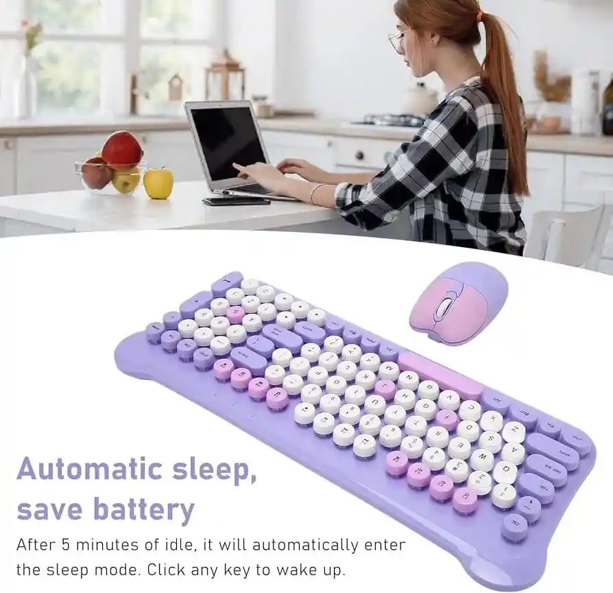 El Kit Teclado Inalámbrico + Mouse AOAS AS-212 combina diseño moderno, funcionalidad y comodidad en un elegante color rosado. Su teclado de teclas redondeadas ofrece una escritura suave y silenciosa, ideal para largas jornadas de trabajo, estudio o uso diario en el hogar u oficina. El mouse inalámbrico ergonómico brinda un manejo preciso y cómodo, permitiendo libertad de movimiento sin cables. Ambos dispositivos funcionan mediante receptor USB, lo que garantiza una conexión estable y rápida, compatible con computadores y portátiles. Perfecto para quienes buscan un espacio de trabajo práctico, ordenado y con un toque estético moderno. Características principales: Kit inalámbrico: teclado + mouse Conexión mediante receptor USB Teclas redondeadas para escritura cómoda Mouse ergonómico y ligero. •Diseño moderno en color rosado Ideal para oficina, estudio y uso en casa. •Incluye únicamente teclado, mouse y receptor USB. Los demás elementos son solo ambientación. Tonos: Lila