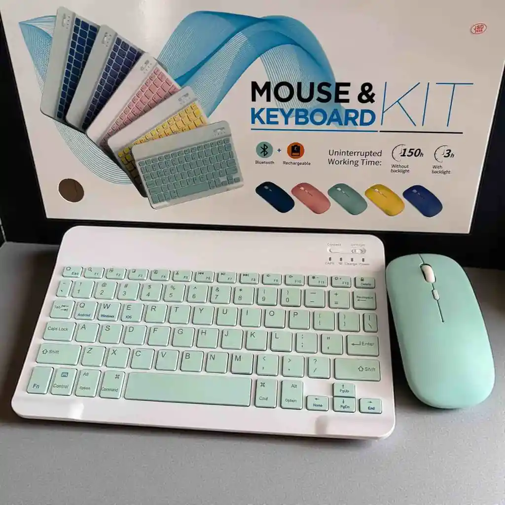 Nota: El teclado viene recargable, el mouse según disponibilidad viene recargable o de 2 pilas triple A (N0 INCLUIDAS). Distancia de operación efectiva: dentro de 10 m Sistema de modulación GFSK Tiempo de trabajo ininterrumpido: 150 H (sin retroiluminación/3 H/. Voltaje de funcionamiento: 3-5 V 4. Duración de la batería de litio: 2-3 años Tiempo de carga: 2-3 hs 10. Capacidad de la batería de litio: 150 mA/420 mA Tecla de encendido: deslice el interruptor hacia ON o OFF para encender o apagar el dispositivo. Tecla de conexión: con la tecla de encendido encendida, presione la tecla de conexión para que el teclado comience a prepararse FN+ Android Convertir Android FN-win Convertir para conexión Bluetooth. Tres niveles de brillo 2.Indicador Indicador de encendido, que permanece encendido durante 4 segundos cuando se enciende la tecla de encendido y luego se apaga. Indicador de conexión Bluetooth, que parpadea cuando se presiona la tecla de conexión y se apaga cuando el El teclado está conectado a su dispositivo. Indicador de bloqueo de mayúsculas, que está encendido cuando el teclado está conectado a su dispositivo. Indicador de bloqueo de mayúsculas, que se enciende cuando se utiliza el cable USB para cargar el teclado.