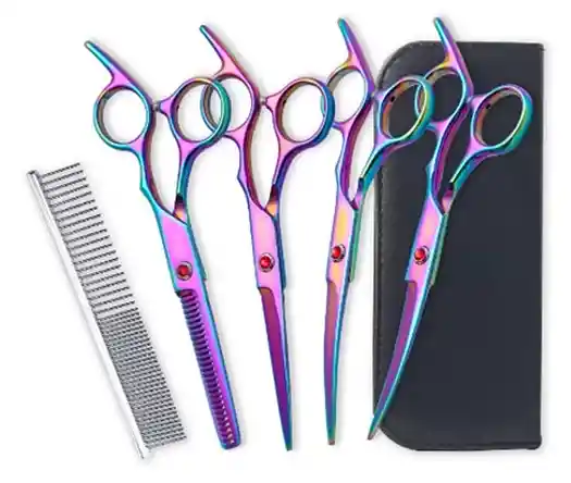 Material de alta calidad: Acero inoxidable premium, resistente y duradero, ideal para un corte eficiente. Variedad de tijeras: Incluye tijeras rectas, curva (hacia abajo) entresacadora y diente de tiburón adaptándose a todas las necesidades. Ergonómicas y ligeras: Diseñadas para ofrecer un manejo cómodo y evitar la fatiga durante largas sesiones de trabajo. Filo preciso: Afilado de alta precisión para cortes rápidos y uniformes. Estuche de almacenamiento: Mantén tus tijeras organizadas y seguras con el práctico estuche incluido. Ideal para uso profesional y doméstico: Perfecto tanto para estilistas de mascotas como para dueños que desean un corte de calidad.