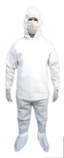 Pantalón ajustable con resorte en tobillos y pretina, buzo con puños y capucha ajustable resortada, polainas resortadas en el tobillo y tapabocas.