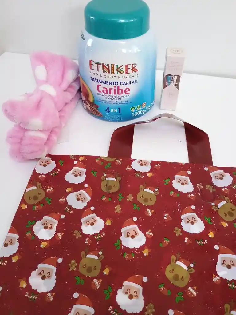 Un tratamiento capilar caribe 1000 gr Una balaca para skincare Un brillo hidratante boluminizador Obsequio bolsa de regalo