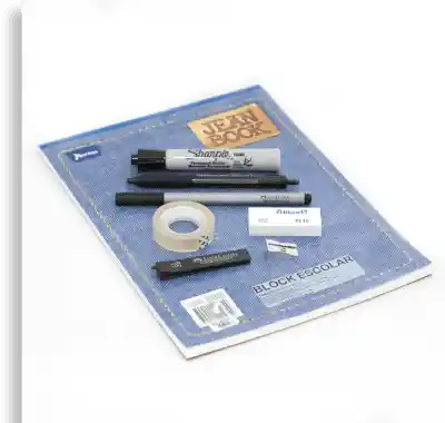 Un block carta cuadriculado,Un marcador Permanente me,Un bolígrafo paper Mate retráctil,Un micropunta negro Faber Castell,Un rollo de cinta tesa 12x20,Un borrador pelikan,Un sacapuntas metálico,Un tarro de minas 0.5 HBa