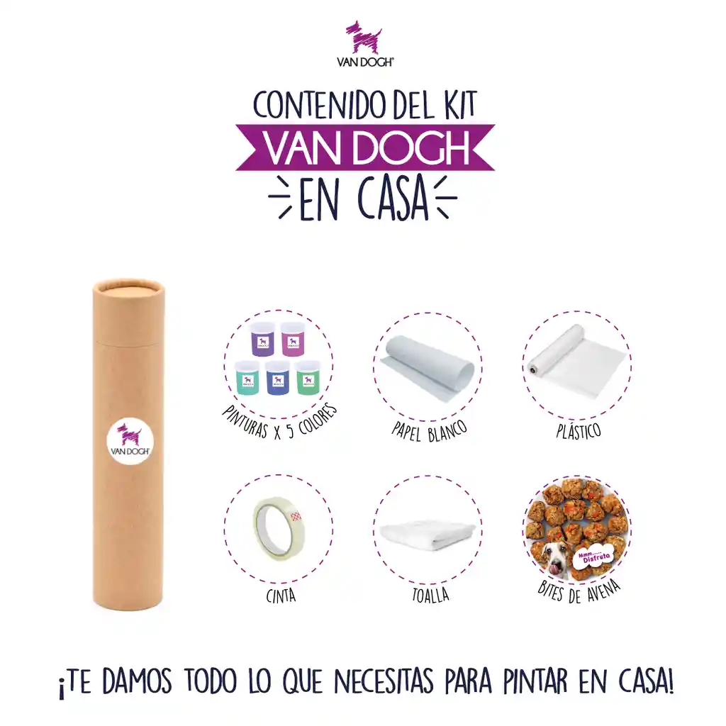 ¿Sabías que los perros pueden pintar? El Kit Van Dogh en Casa tiene todo lo que necesitas para que te diviertas pintando con tu perro para crear su propia obra de arte. Incluye obra enmarcada de 50 x 30 c.m impresa en lienzo. Te dejamos algunas fotos para que veas cómo quedan las obras de arte ;)