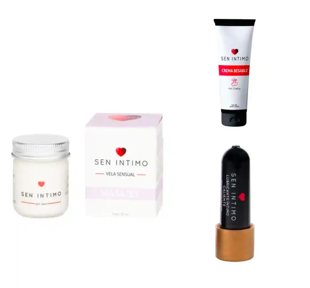 Deleita tus sentidos y los de tu pareja con este kit, incluye vela para masajes 25 ml, lubricante sabor crema de whisky 5 ml y crema besable hot cherry 30 ml